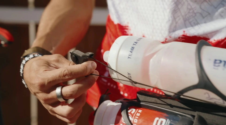 A nossa inovação BottleGrip™ integra as fitas de retenção da garrafa diretamente no HydroFlow®.